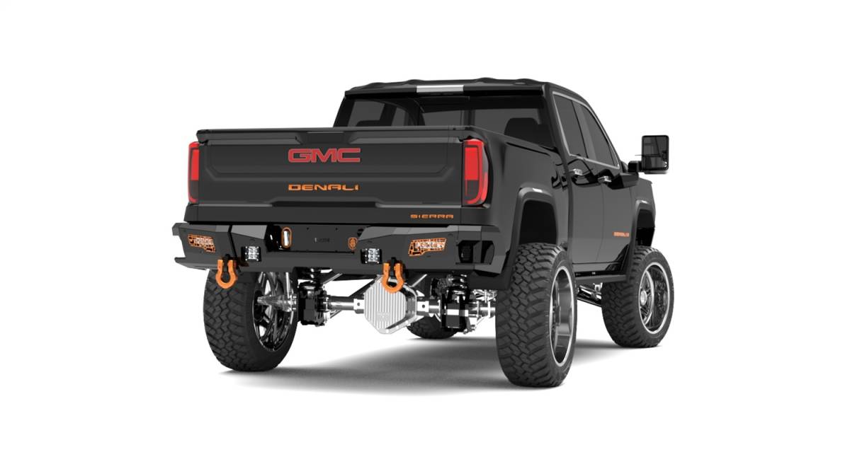 Identity Rear Bumper Full Kit; Shackles End Pod; Dual Pod And Single Row Light Pod; Mesh Identity Pattern; Hardware Kit;