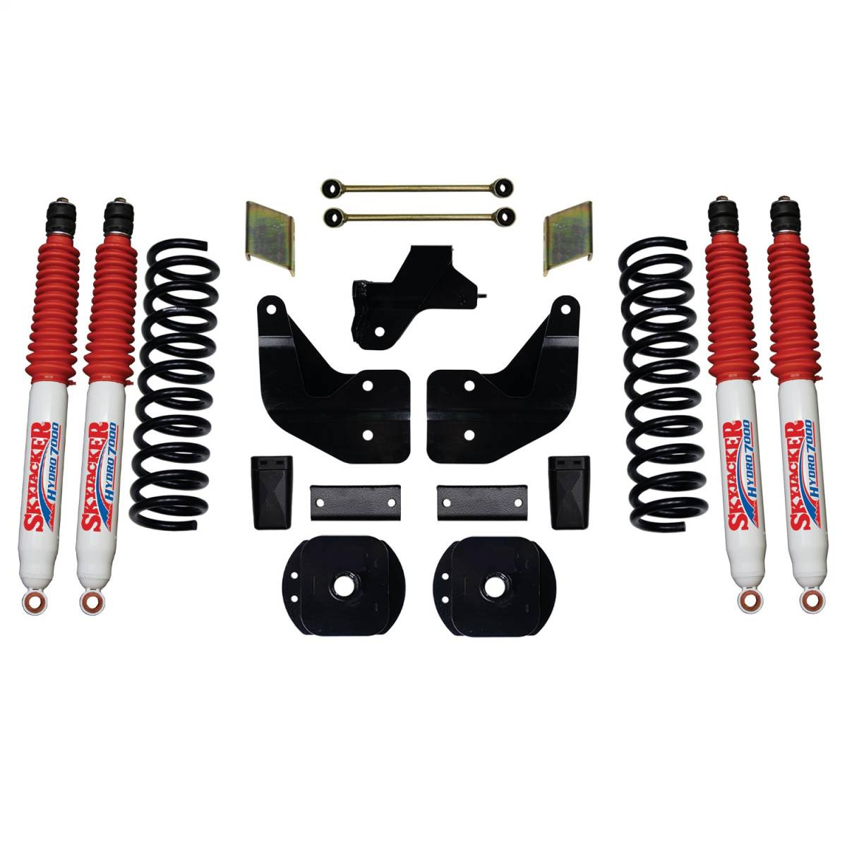 4 in. Lift Kit With Front Coil Springs; Front Track Bar Bracket; Front Poly Bump Stops; Front Sway Bar Brackets; Radius Arm Brackets; Rear Coil Spring Spacers; Rear Bump Stop Brackets; Rear Sway Bar End Links; F/R Hydro 7000 Shocks.