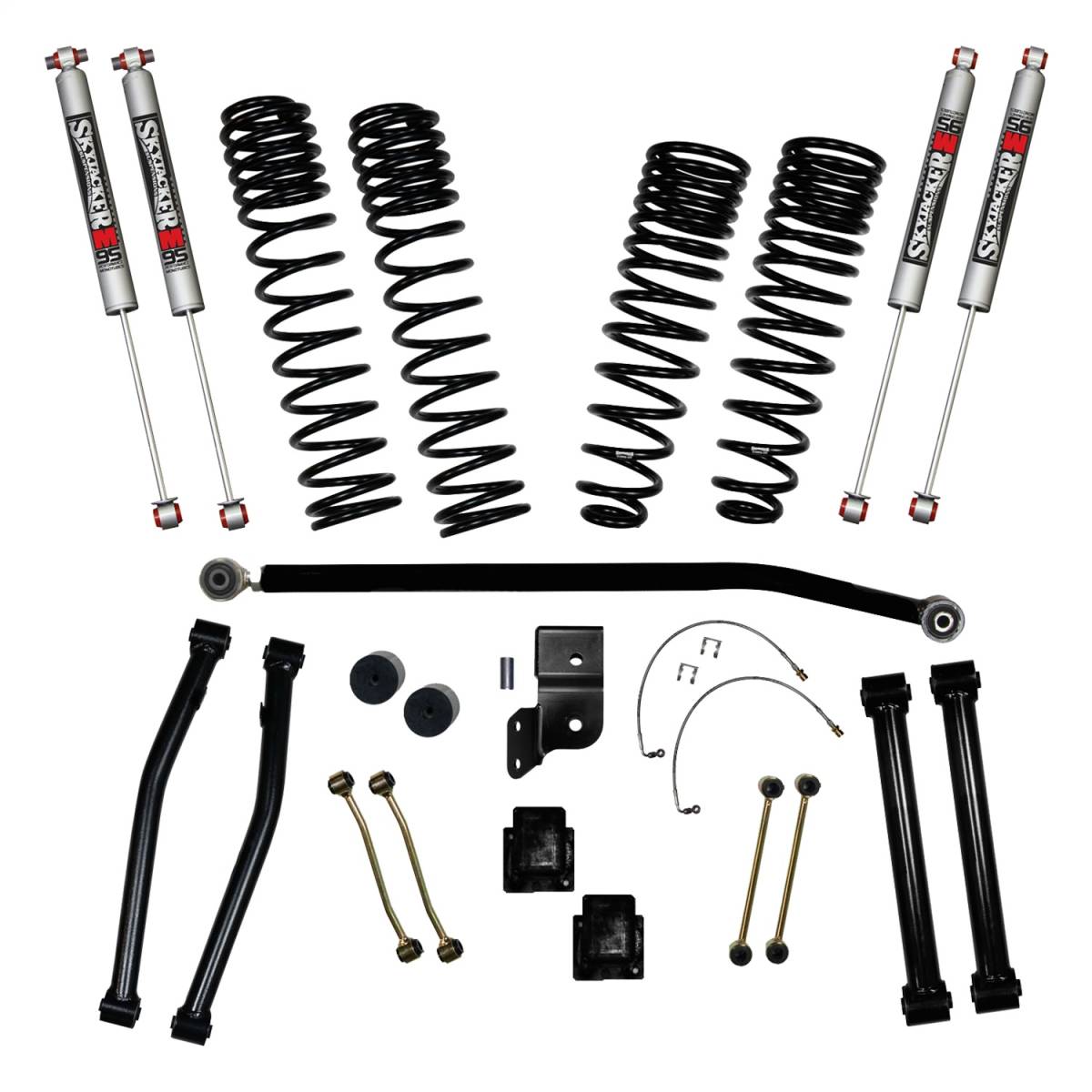 4.5 Inch Suspension Lift System With F/R DR/LT Coil Springs; Front Adjust Track Bar; Front Lower Links; Rear Upper Links; Rear Track Bar Brkt; Rear Brakelines; F/R Bump Stop Spacers; F/R Sway Bar End Links;/M95 Monotube Shocks