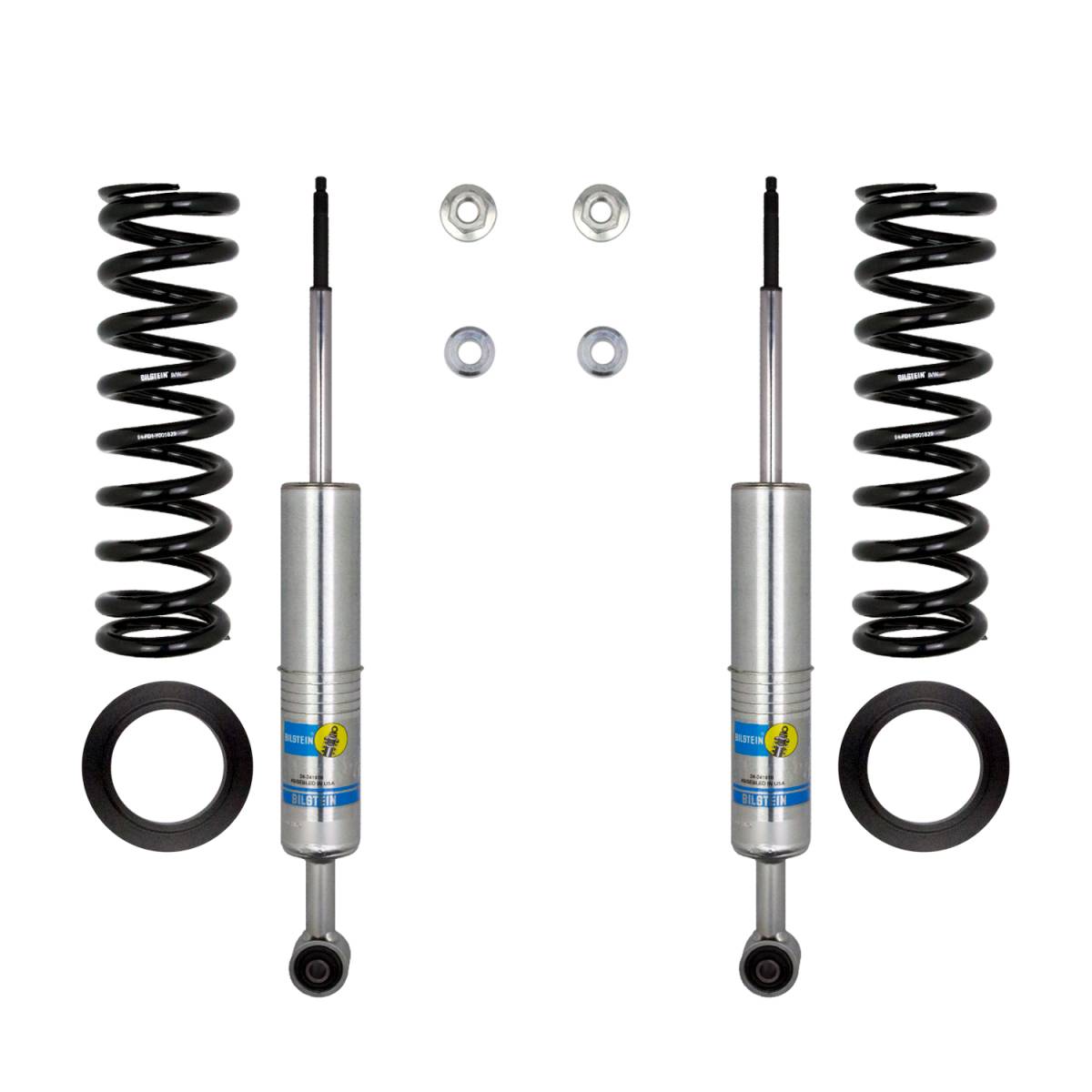 Bilstein B8 6112 leveling kits are designed to provide more ground clearance, allow for larger tires, and increase wheel travel. Multiple snap-ring grooves in the body allow for different spring seat positions, providing 0-2.75 inches of front lift (depending on application). These kits consist of (2) 60mm shock absorbers combined with (2) custom matched cold wound coil springs and (2) billet aluminum spring seats. The large 60mm digressive piston allows for increased damping control for optimal on-road and off-road capabilities. Experience the legendary Bilstein off-road experience with the best direct fit spring and shock kit for your light truck or SUV.