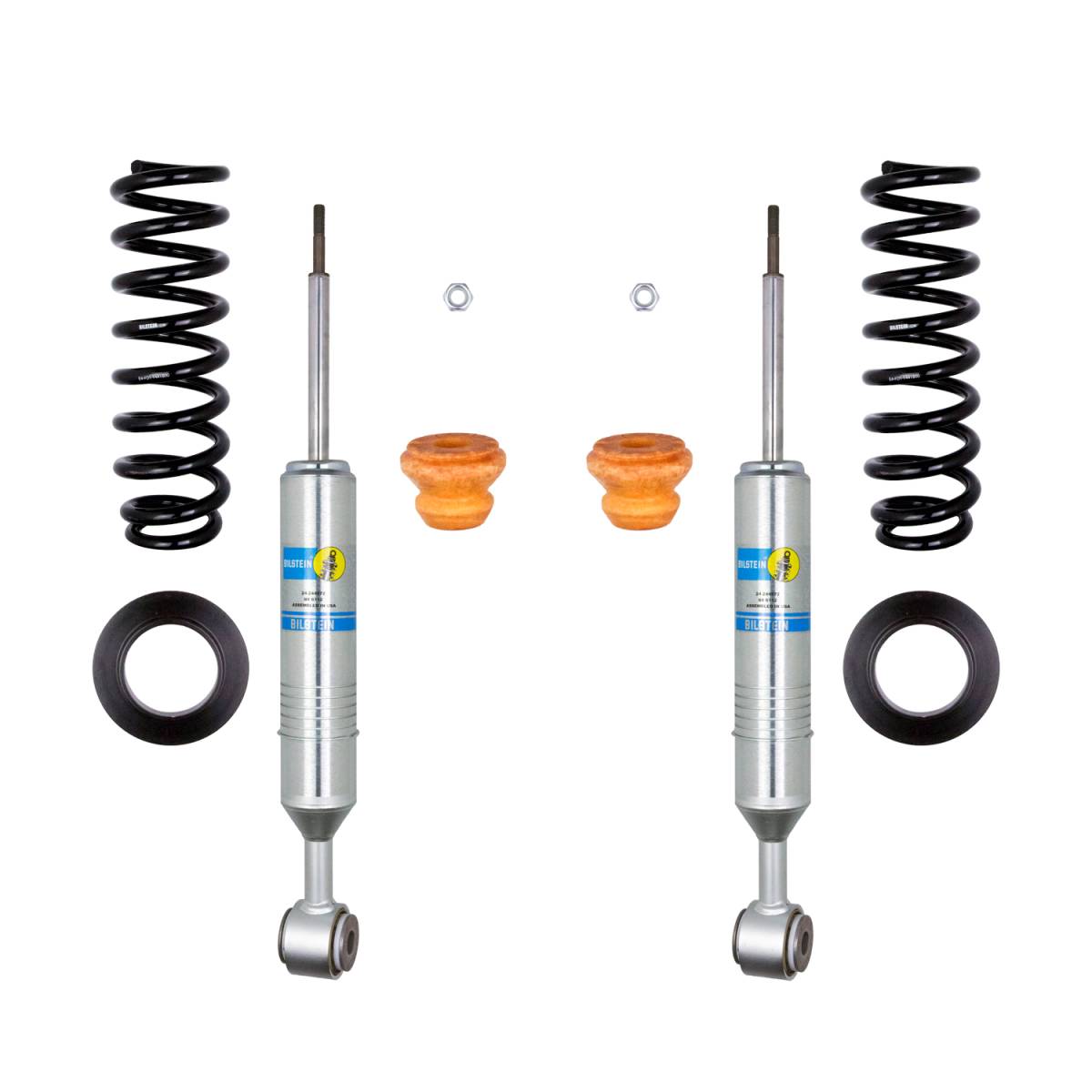 Bilstein B8 6112 leveling kits are designed to provide more ground clearance, allow for larger tires, and increase wheel travel. Multiple snap-ring grooves in the body allow for different spring seat positions, providing 0-2.75 inches of front lift (depending on application). These kits consist of (2) 60mm shock absorbers combined with (2) custom matched cold wound coil springs and (2) billet aluminum spring seats. The large 60mm digressive piston allows for increased damping control for optimal on-road and off-road capabilities. Experience the legendary Bilstein off-road experience with the best direct fit spring and shock kit for your light truck or SUV.