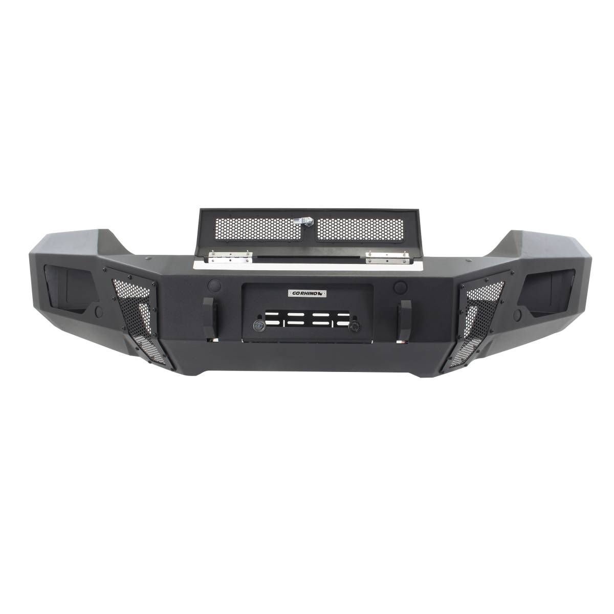 Part of Go Rhino's famous BR Bumper family. The BR6 winch-ready HD Front Bumper Replacement offers heavy duty front end protection while upgrading your vehicle's factory appearance with an aggressive, modern look. The unique design includes integrated light ports, while optional light plates. and patented Light Mount Bar allows for additional customization. It's not all just good looks - the BR6's sturdy, 1/4" steel winch plate can accommodate winches rated up to 12,500 pounds and the patented Rhino Hook shackles mounts are attached directly to frame rails for extra strength. BR6 Bumpers come with a Limited Lifetime warranty on materials and construction and a 5 year warranty on the Textured Black Finish.