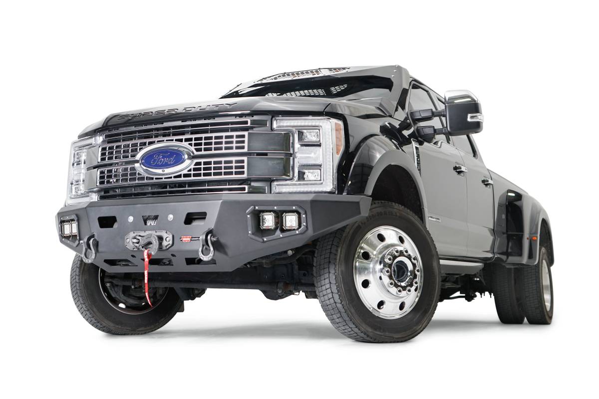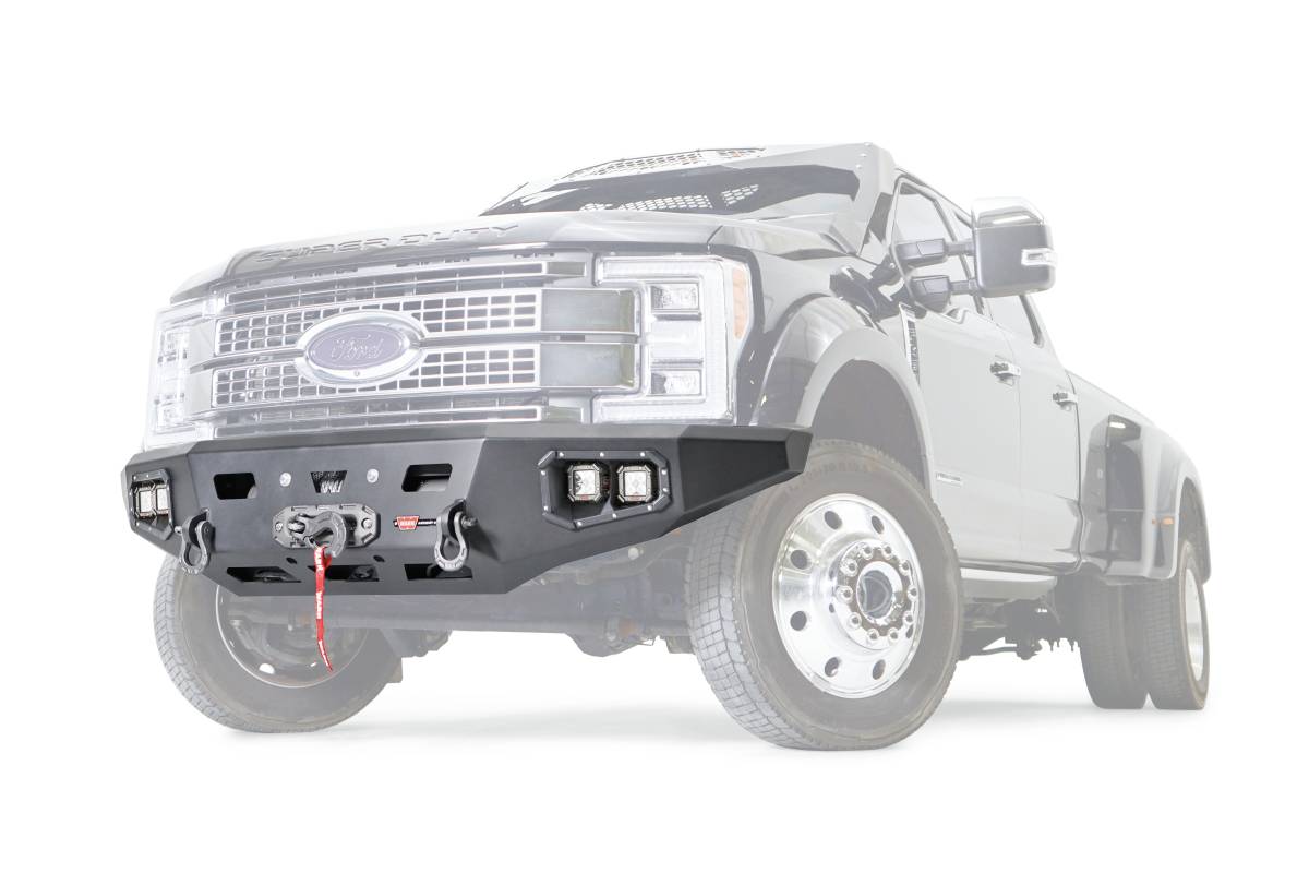 Direct-Fit; Mounting Hardware Included; Without Grill Guard; With Winch Mount; With D-Ring Mounts; With Light Cutout; Textured Black Steel