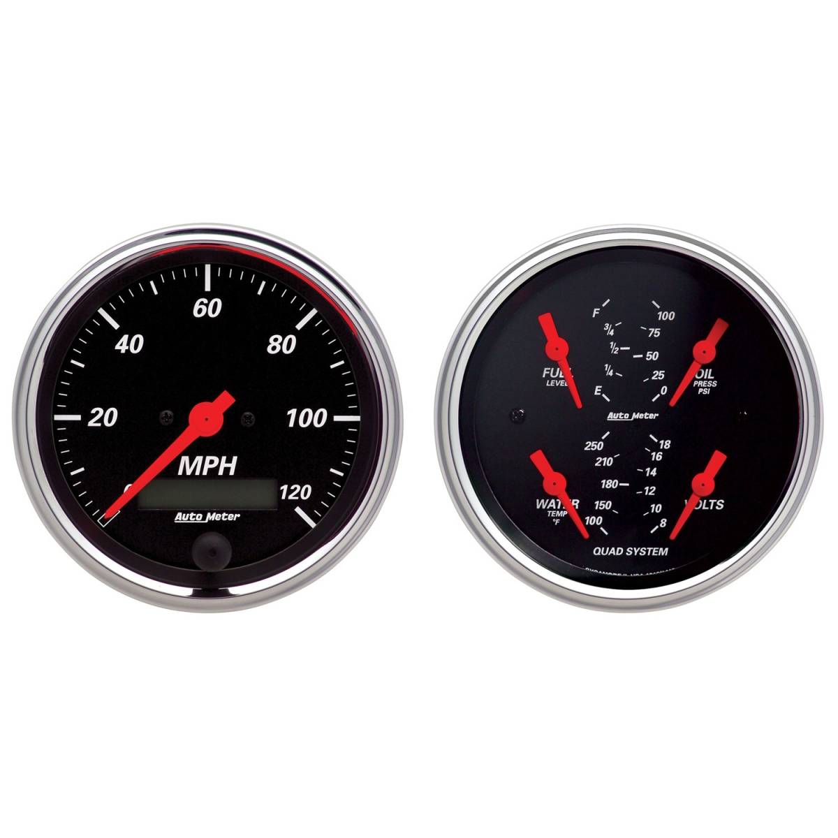 AutoMeter GAUGE KIT, 2 PC., QUAD & SPEEDOMETER, 3 3/8" , DESIGNER BLACK 1408