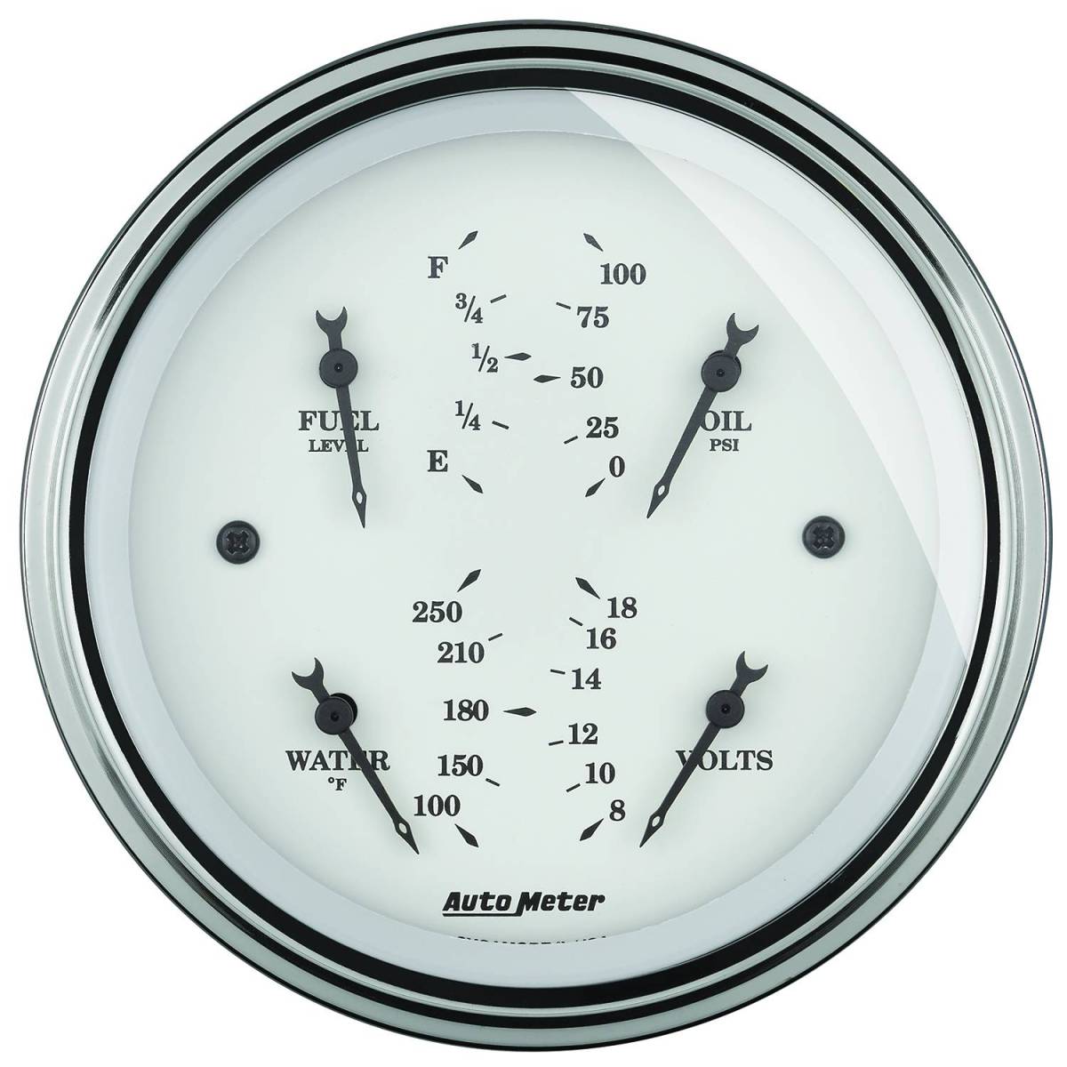 Sometimes Space Is Limited. The Autometer Quad Gauge Provides A Solution To Limited Dashboard Space While Providing A Clean Look. Individual Autometer Air Core Meter Movements For Each Function Provide The Accuracy And Durability Required By Even The Most Demanding Applications. Includes A Single Wire 1/8" Npt Temperature Sender And A 1/8" Npt Oil Pressure Sender. The Voltmeter Reads From 8-18V On Negative Ground Electrical Systems And Fuel Level Resistance Range Is 0 Ohms Empty To 90 Ohms Full (Compatible With Amid 60S Through Mid 90S Gm Fuel Level Senders).