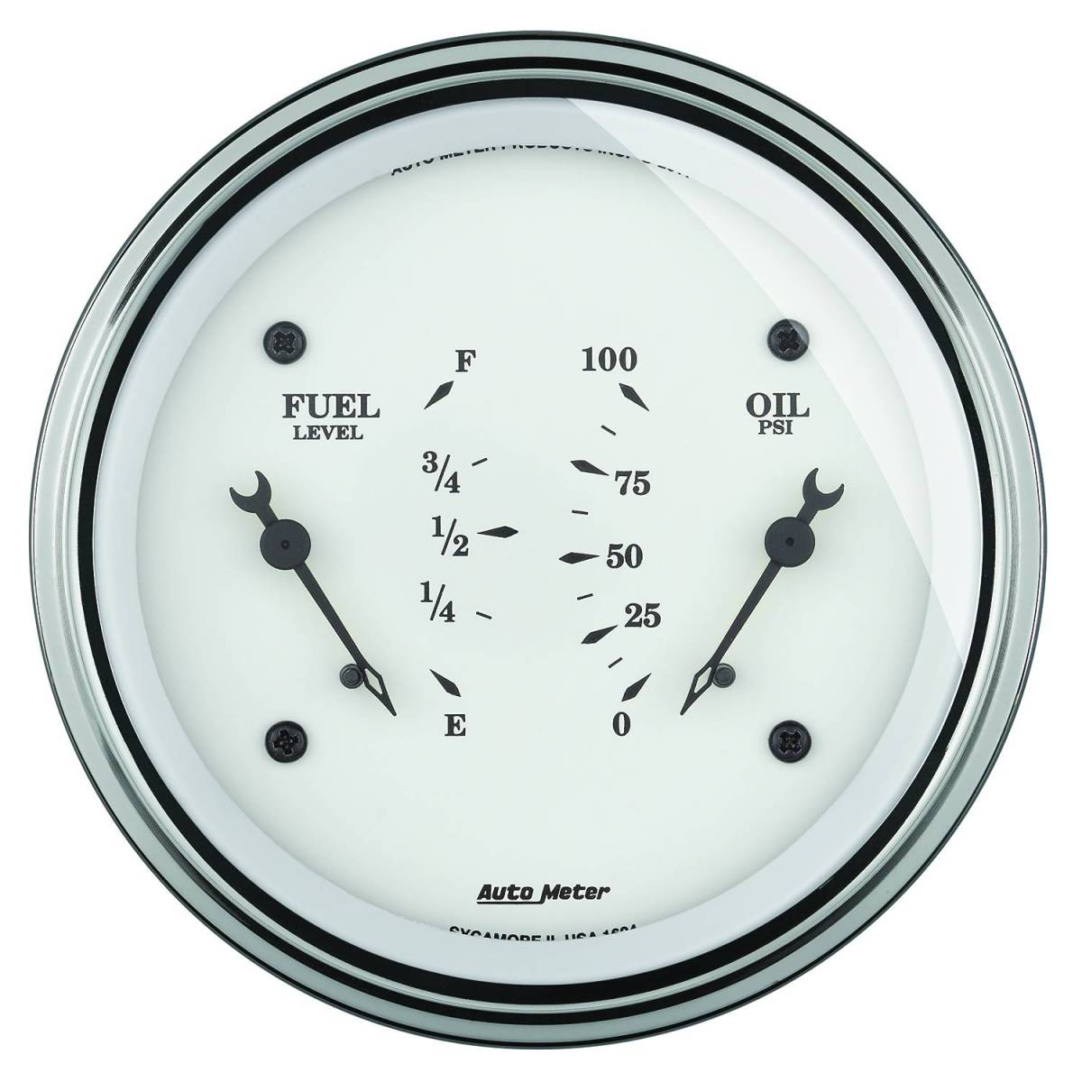 AutoMeter GAUGE, DUAL, FUEL & OILP, 3 3/8" , 0OE-90OF & 100PSI, ELEC, OLD TYME WHITE 1624