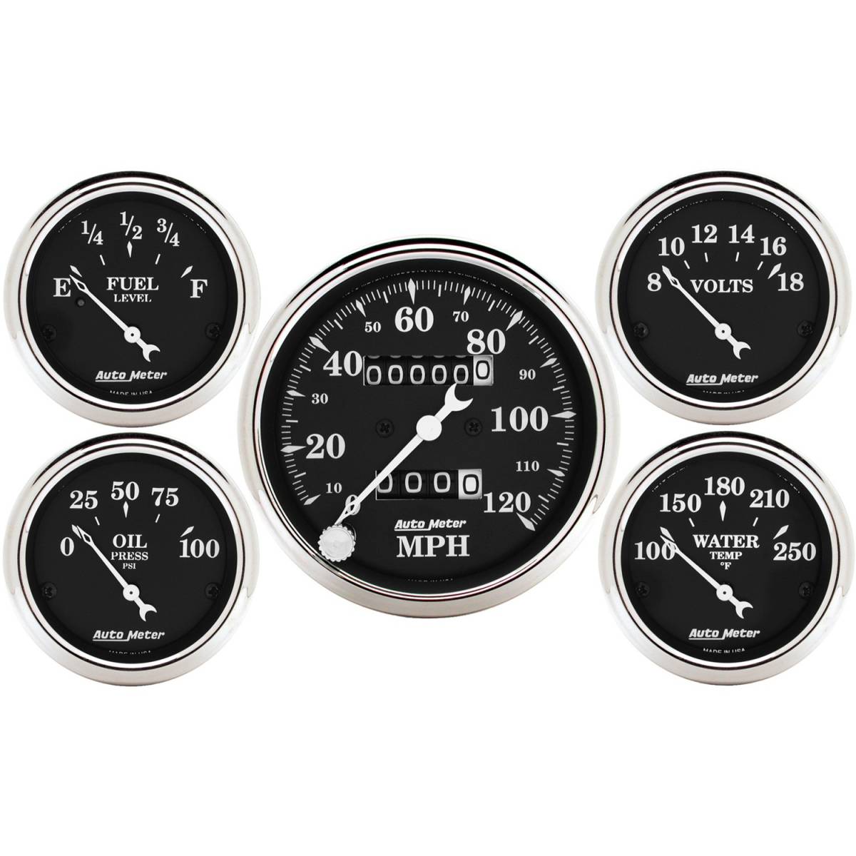 AutoMeter GAUGE KIT, 5 PC., 3 1/8" & 2 1/16" , MECH. SPEEDOMETER, OLD TYME BLACK 1708
