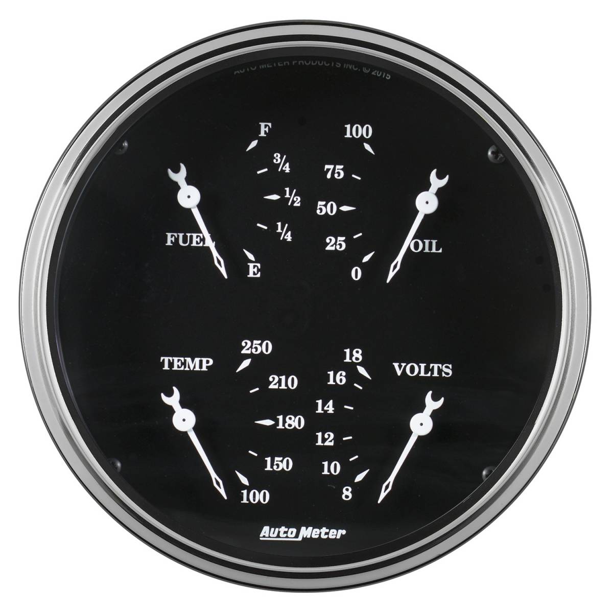 Sometimes Space Is Limited. The Autometer Quad Gauge Provides A Solution To Limited Dashboard Space While Providing A Clean Look. Individual Autometer Air Core Meter Movements For Each Function Provide The Accuracy And Durability Required By Even The Most Demanding Applications. Includes A Single Wire 1/8" Npt Temperature Sender And A 1/8" Npt Oil Pressure Sender. The Voltmeter Reads From 8-18V On Negative Ground Electrical Systems And Fuel Level Resistance Range Is 0 Ohms Empty To 90 Ohms Full (Compatible With Amid 60S Through Mid 90S Gm Fuel Level Senders).