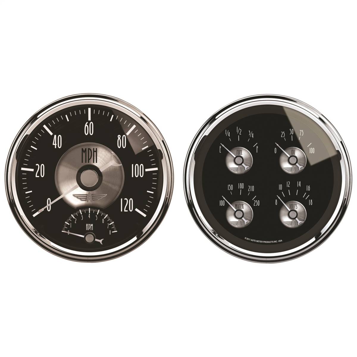Sometimes Space Is Limited. The Autometer Quad Gauge Provides A Solution To Limited Dashboard Space While Providing A Clean Look. Individual Autometer Air Core Meter Movements For Each Function Provide The Accuracy And Durability Required By Even The Most Demanding Applications. Includes A Single Wire 1/8" Npt Temperature Sender And A 1/8" Npt Oil Pressure Sender. The Voltmeter Reads From 8-18V On Negative Ground Electrical Systems And Fuel Level Resistance Range Is 240 Ohms Empty To 33 Ohms Full (Compatible With Autometers 3262 Fuel Level Sender).