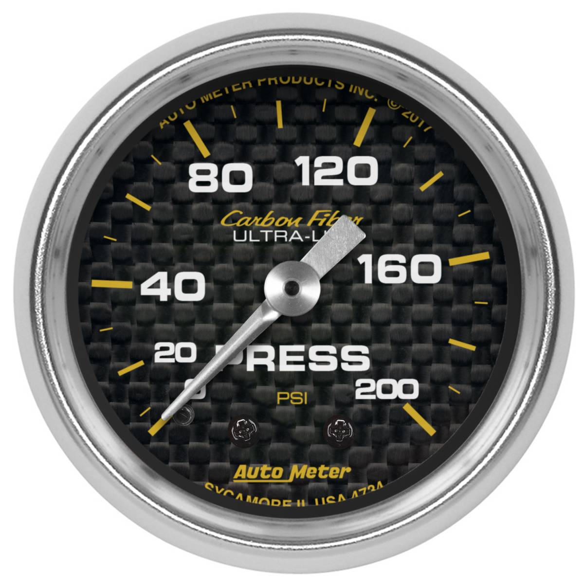 AutoMeter GAUGE, PRESSURE, 2 1/16" , 200PSI, MECHANICAL, CARBON FIBER 4734