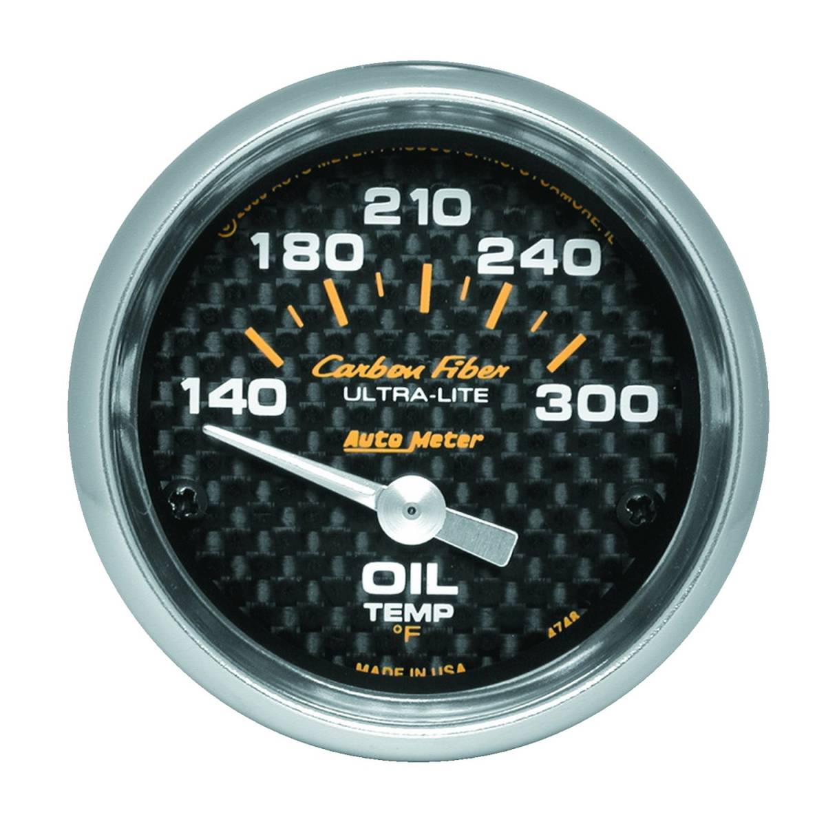 AutoMeter GAUGE, OIL TEMP, 2 1/16" , 140-300 Degrees F, ELECTRIC, CARBON FIBER 4748