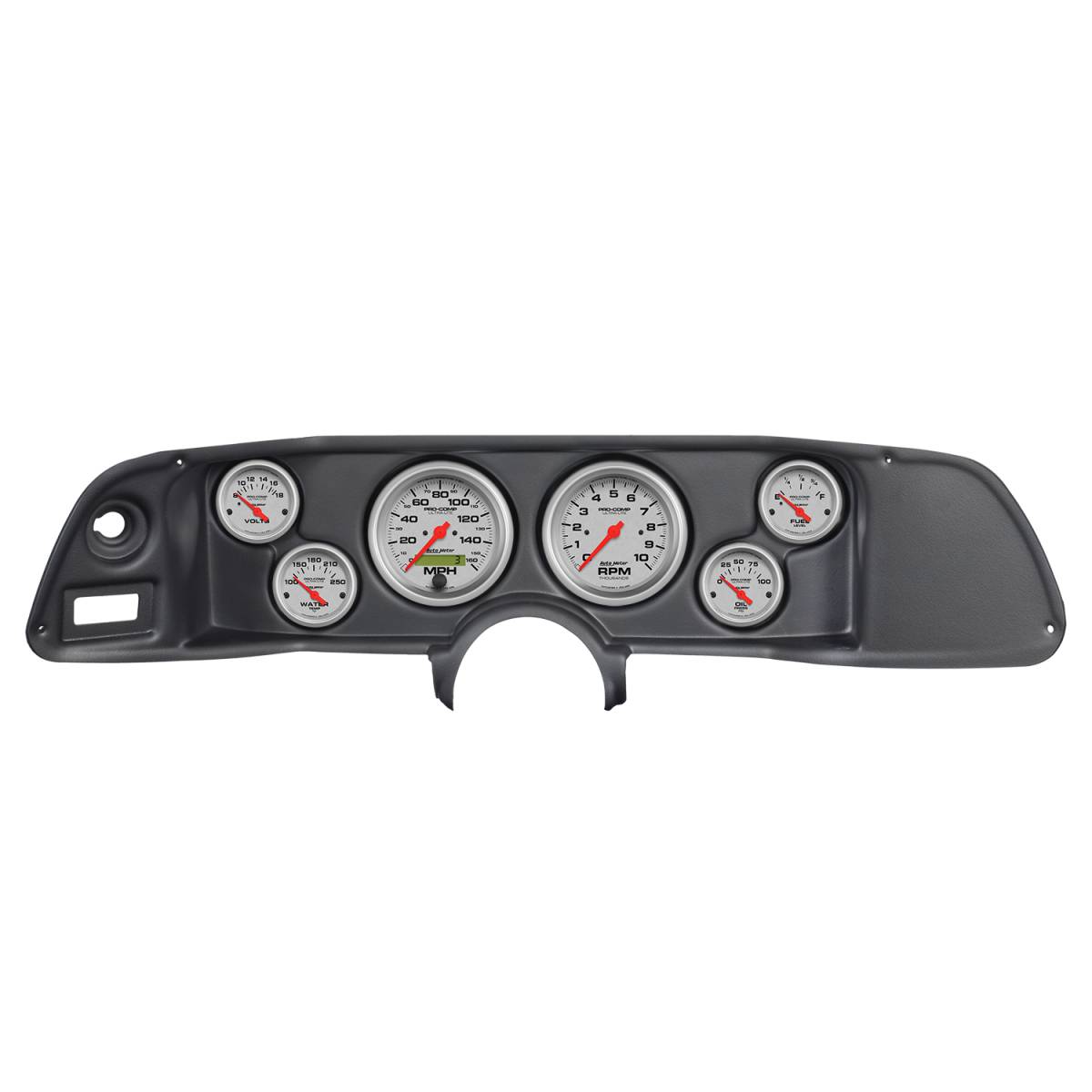 Upgrade your muscle car or classic truck with an AutoMeter direct-fit Ultra Lite dash kit. Each easy-to-install package includes a durable replacement dash panel and six iconic Ultra Lite series gauges featuring spun metal dials and bright chrome bezels. White LED through dial lighting ensures optimal visibility during low-light conditions while our easy, no fab installation allows you to preserve the original interior of your classic ride.