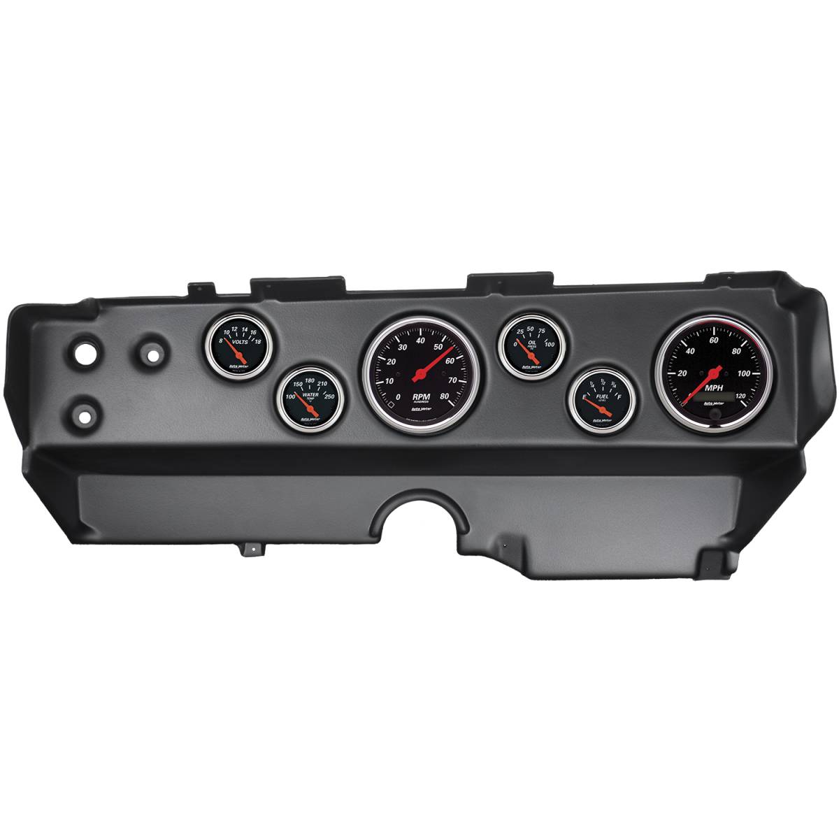 Upgrade your muscle car or classic truck with an AutoMeter direct-fit Designer Black dash kit. Each easy-to-install package includes a durable replacement dash panel and six iconic Designer Black series gauges featuring spun metal dials and bright chrome bezels. White LED through dial lighting ensures optimal visibility during low-light conditions while our easy, no fab installation allows you to preserve the original interior of your classic ride.