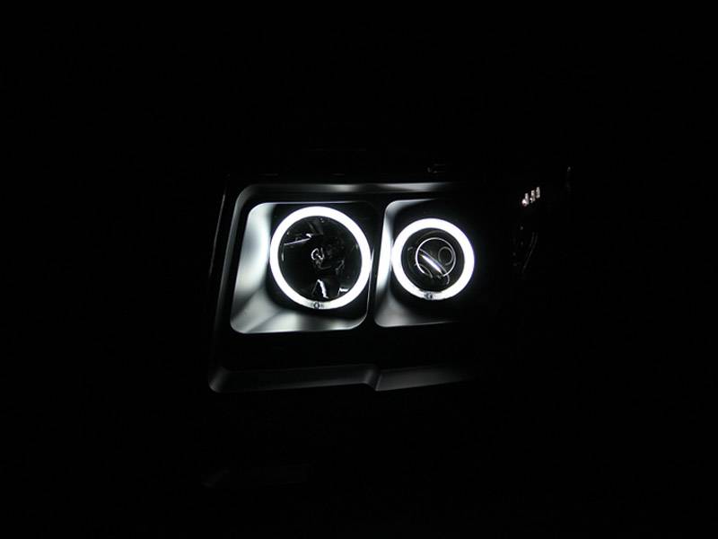Projector Headlight Set, w/Halo, Clear Lens, Black Housing, Pair, CCFL, For Use w/Non HID Models Only Guaranteed To Improve Your Vehicles Appearance. Rigorously Tested For Fit And Function. Simple Plug And Play. No Modifications Required. Easy Installation Using Common Hand Tools. Uses Stock Mounting Locations And Hardware. D.O.T. Compliant To S.A.E. Standards. Sold As A Pair. Does Not Fit Models With Factory HID Bulbs.