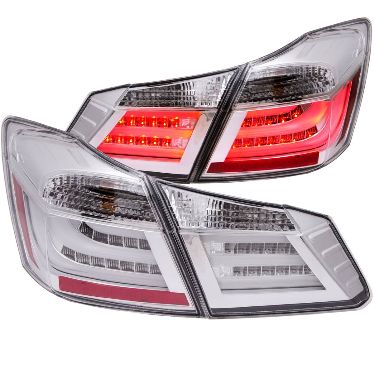 Tail Light Assembly, LED, Clear Lens, Chrome Housing, Pair, 4 pc. Guaranteed To Improve Your Vehicles Appearance. Rigorously Tested For Fit And Function. Simple Plug And Play. No Modifications Required. Easy Installation Using Common Hand Tools. Uses Stock Mounting Locations And Hardware. D.O.T. Compliant To S.A.E. Standards. Sold As A Pair.