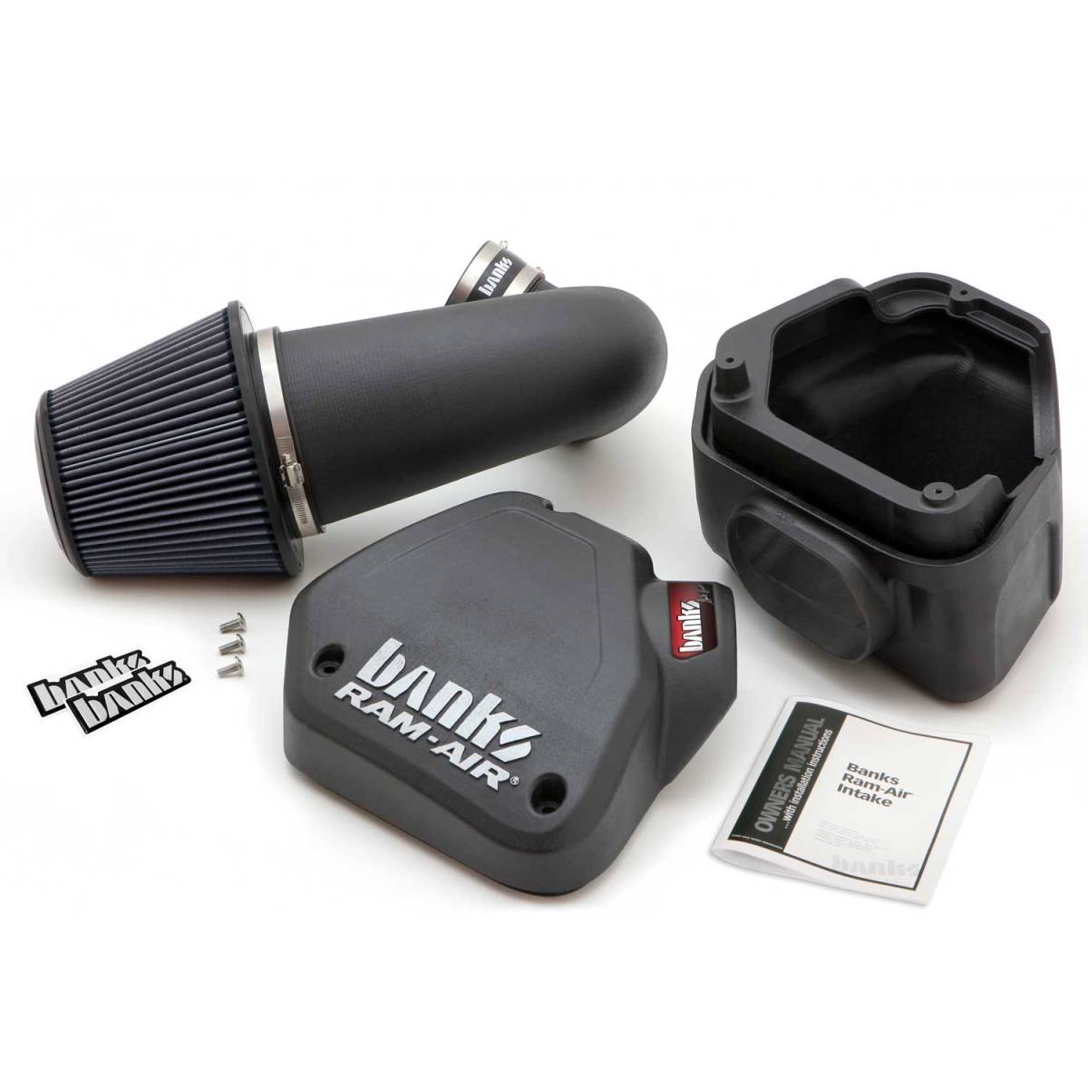 Banks Ram-Air Superiority. Increase Power and MPG. Banks Ram-Air Intake System replaces the factory's flat panel filter with a large conical filter that provides maximum high-flow filtration. The Ram-Air's opening dwarfs the stock's inlet. The huge inlet, enclosed housing and much larger tubing reduce restrictions, dramatically improving airflow to the cylinders. Intake tube shaped by CFD software. Please note: This Ram-Air intake system Cannot be installed on a vehicle that has the Banks Brake. New Filter Options! Choose from the traditional red, Oiled filter or the all-new black, Dry filter.